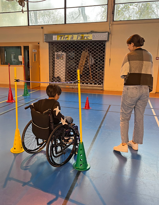 - Handi-fauteuil et parcours en fauteuil roulant pour appréhender la mobilité réduite.
