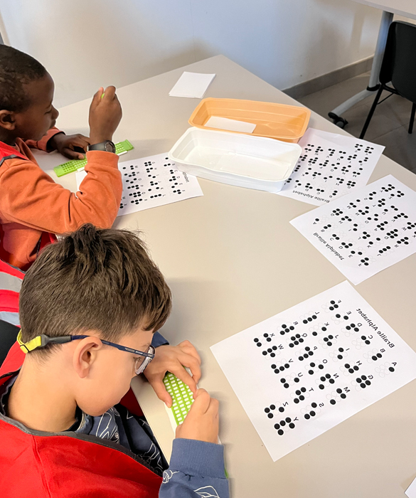 - Initiation au braille : les enfants ont appris à écrire leur prénom en braille.