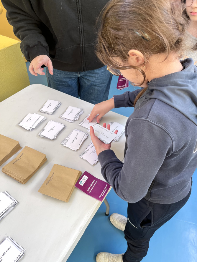 Chaque élève a pris les bulletins de vote et une enveloppe, avant de se rendre dans un isoloir pour exprimer son choix en toute confidentialité. Les enfants ont ensuite présenté leur carte d’électeur, puis déposé leur enveloppe dans l’urne sous le regard attentif des organisateurs. Le président du bureau de vote a prononcé le traditionnel « A voté ! » à chaque passage. Enfin, chaque enfant a signé le registre, pour officialiser son acte de citoyen.