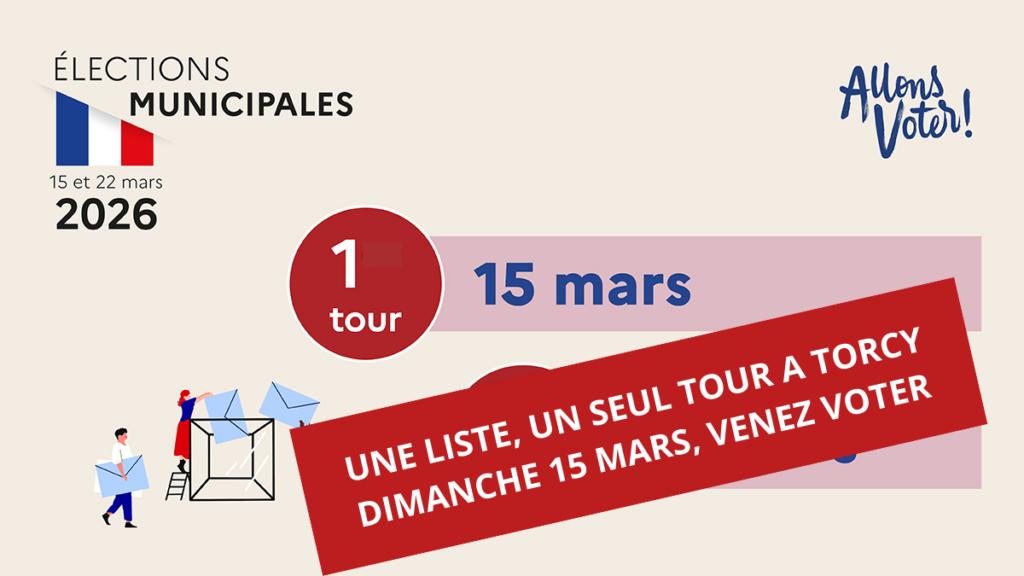 Les élections municipales et communautaires se tiendront le dimanche 15 mars 2026. En effet, à Torcy, il n’y aura qu’un tour car il n’y a qu’une seule liste.